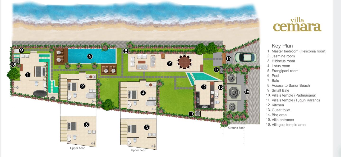Der großzügige, offene Wohn- und Esspavillon bietet einen freien Blick auf das Meer und schafft eine entspannte Atmosphäre im typischen Bali-Stil. Hochwertige Möbel, natürliche Materialien und liebevolle Details sorgen für ein warmes, einladendes Ambiente. Die Villa verfügt über fünf großzügige Schlafzimmer, darunter eine beeindruckende Master-Suite mit privatem Innenhof und Jacuzzi ein echtes Highlight für anspruchsvolle Gäste. Alle Räume sind klimatisiert und bieten modernen Komfort, während gleichzeitig der authentische Charakter der Insel bewahrt bleibt. Diese Luxusvilla auf Bali vereint stilvolles Design mit einem Gefühl von absoluter Entschleunigung.